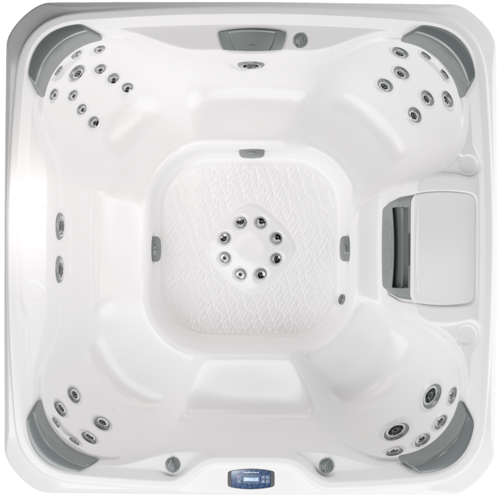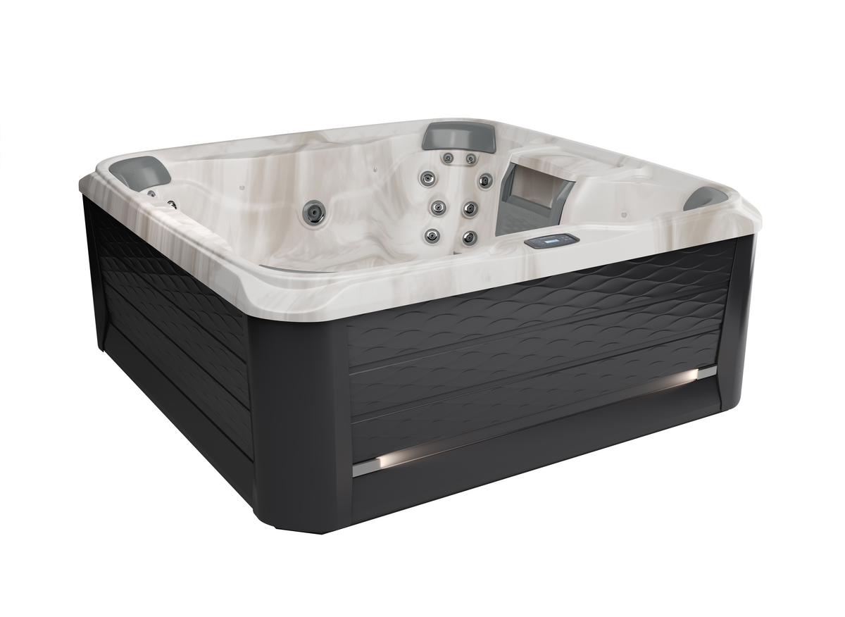 The McKinley™ Spa from the Sundance® 680™ Series offers expansive luxury for up to seven adults. Measuring 89" x 89", it features 42 hydrotherapy jets powered by two high-flow pumps for a deeply invigorating massage experience. Advanced digital controls allow easy programming of water temperature, filtration, and heat cycles, while the ClearRay Active Oxygen® System keeps water fresh and clean. Relax under ambient LED lighting, enjoy the adjustable waterfall, and rest comfortably on four ergonomic headrests. Available with cabinets in Slate or Graphite and shells in elegant shades like Platinum or Midnight, the McKinley™ combines space, style, and performance — with optional SmartTub® connectivity for seamless control.